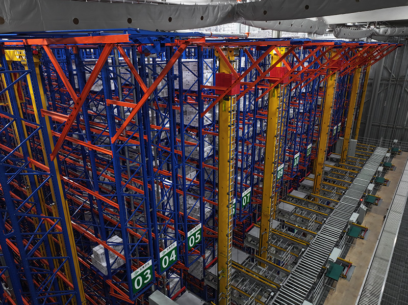 6. 8 aisles and 8 stacker cranes are equipped inside the warehouse, of which the driving speed of the stacker cranes is up to 200 meters per minute and the load capacity is 1 ton per pallet.